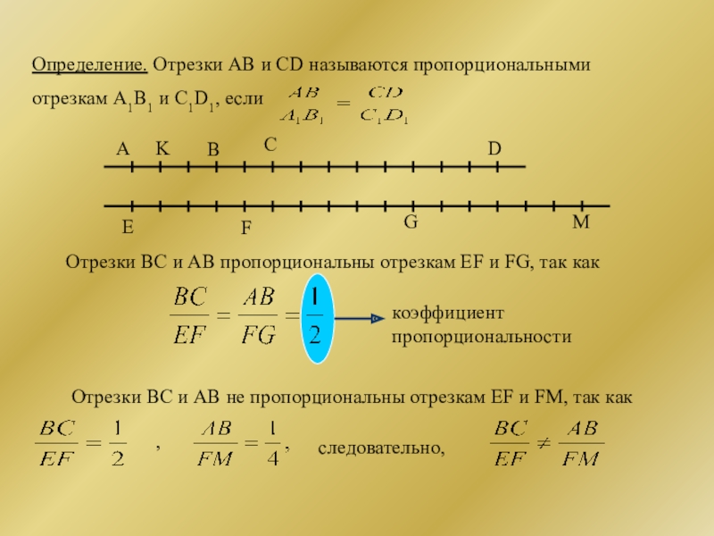 Отрезки BC и AB не пропорциональны отрезкам EF и FM, так как