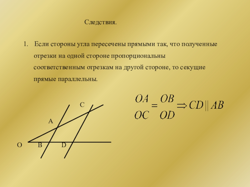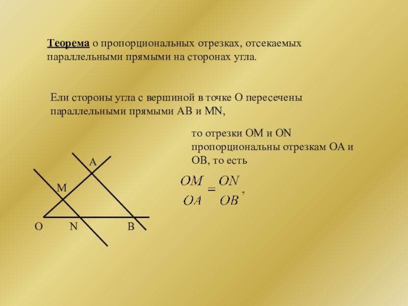 то отрезки OM и ON пропорциональны отрезкам OA и OB, то есть