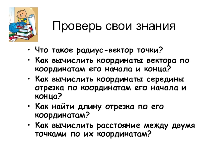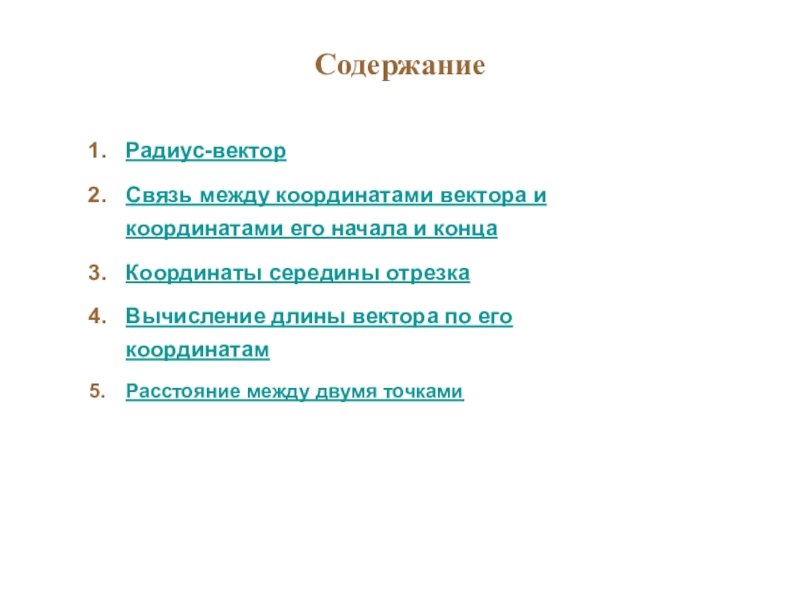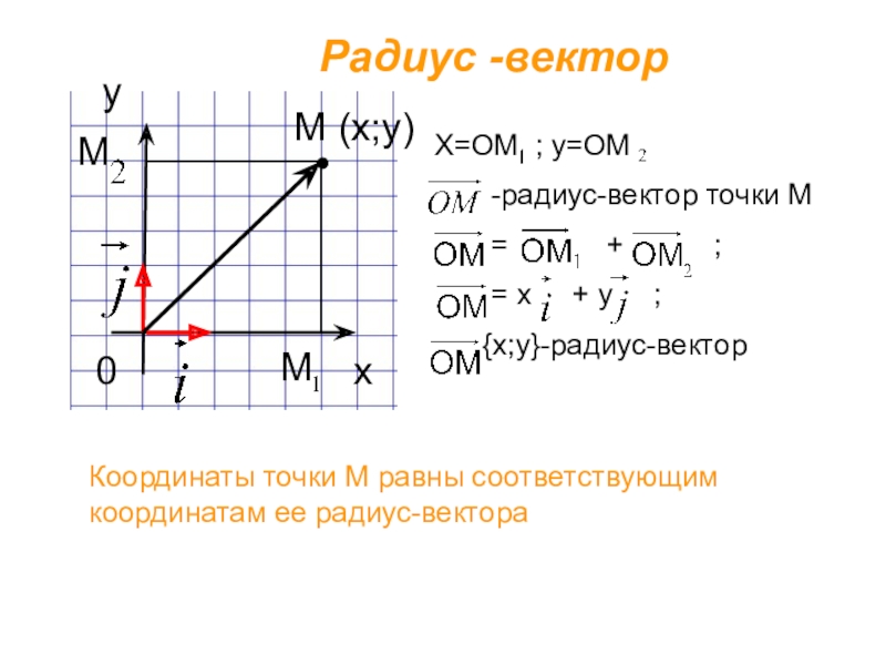 Координаты точки М равны соответствующим координатам ее радиус-вектора