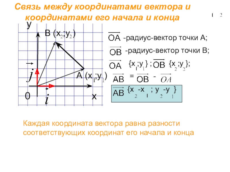 Каждая координата вектора равна разности соответствующих координат его начала и конца