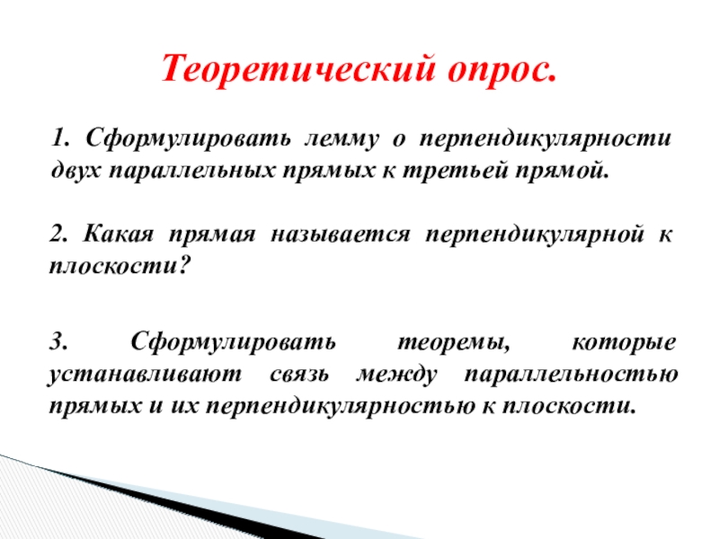 3. Сформулировать теоремы, которые устанавливают связь между параллельностью прямых и их перпендикулярностью к плоскости.