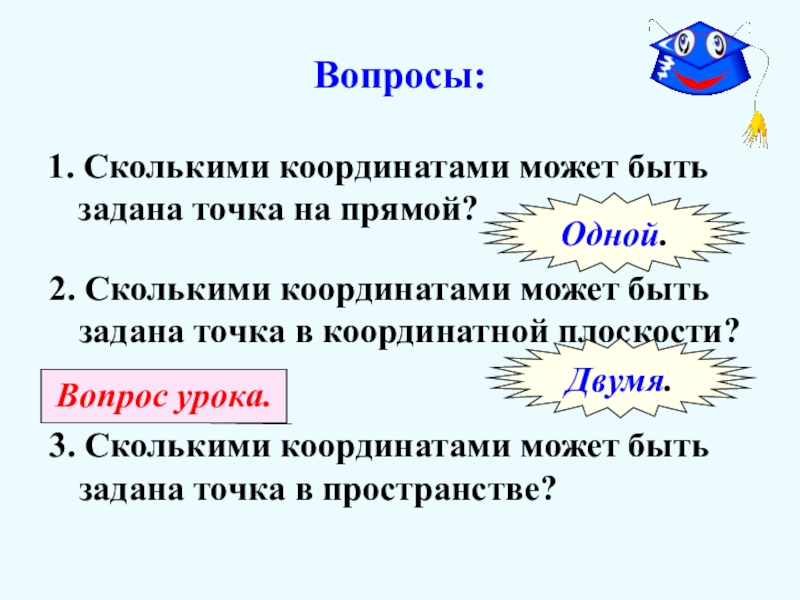 3. Сколькими координатами может быть задана точка в пространстве?