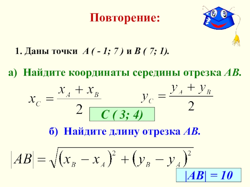 а) Найдите координаты середины отрезка АВ.