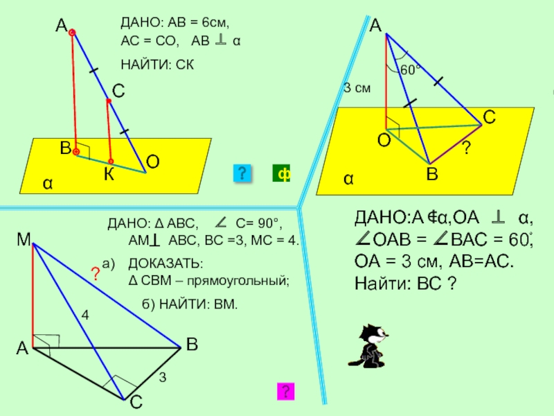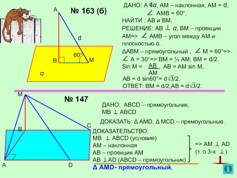 ДАНО: А ∉α, АМ – наклонная, АМ = d,