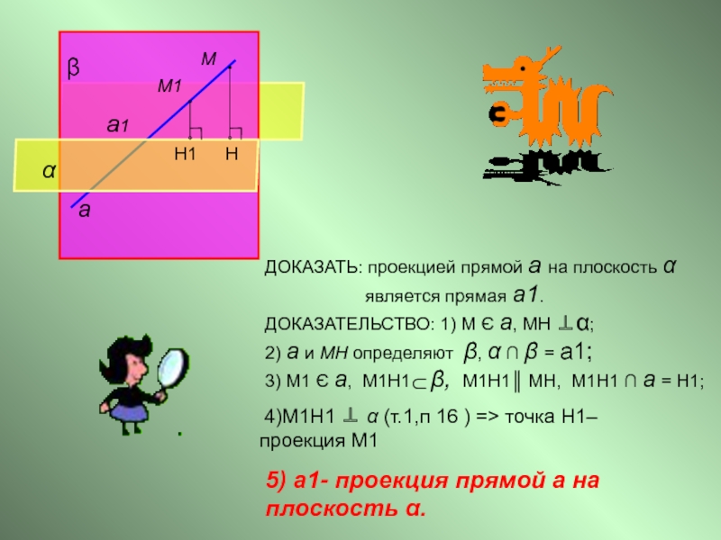 4)М1Н1 ⊥ α (т.1,п 16 ) => точка Н1– проекция М1