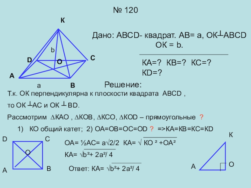 Рассмотрим ∆КАО , ∆КОВ, ∆КСО, ∆КОD – прямоугольные ?