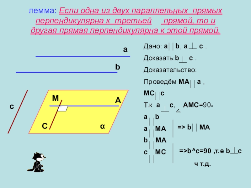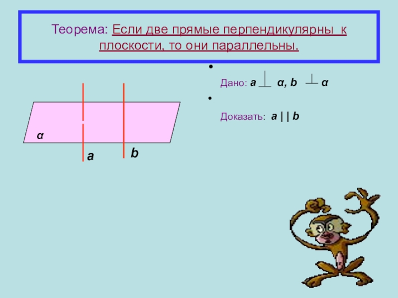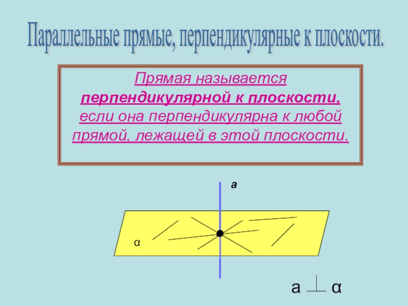 кости α. Т.к. прямая а перпендикулярна к α , то а перпендикулярна