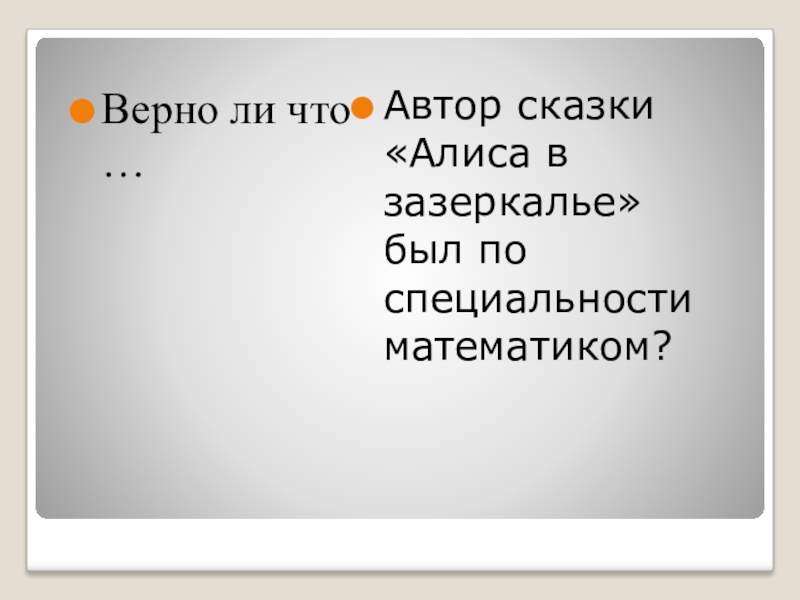 Верно ли что …Автор сказки «Алиса в зазеркалье» был по специальности математиком?
