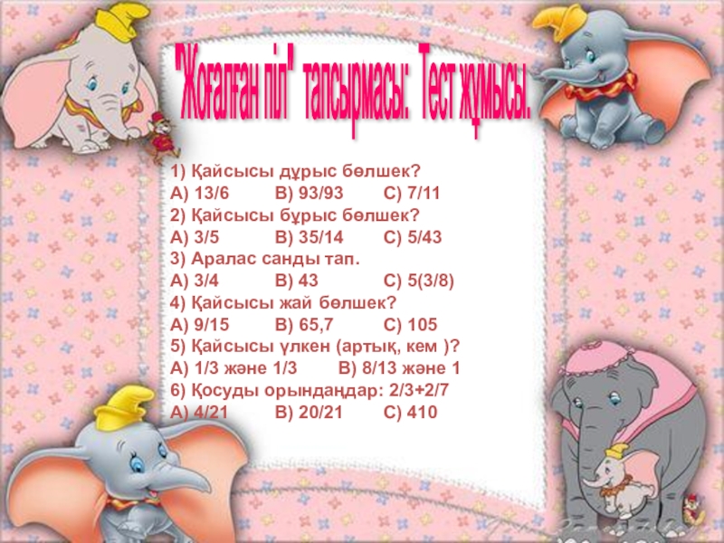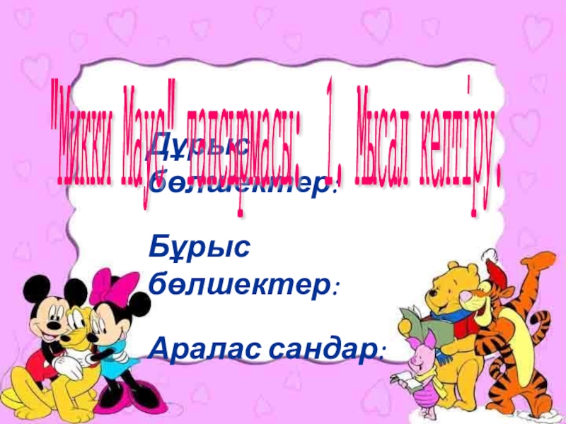 "Микки Маус" тапсырмасы: 2. Ауызша есептер.