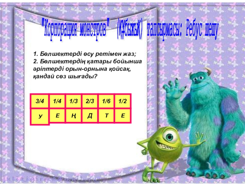 Слайд 14"Корпорация монстров" (құбыжық) тапсырмасы: Ребус шешу