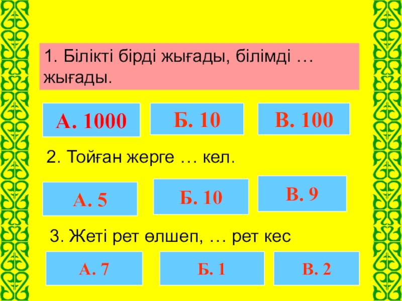 3. Жеті рет өлшеп, … рет кес