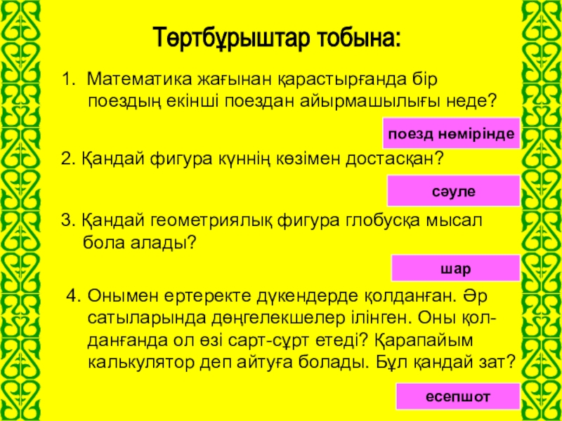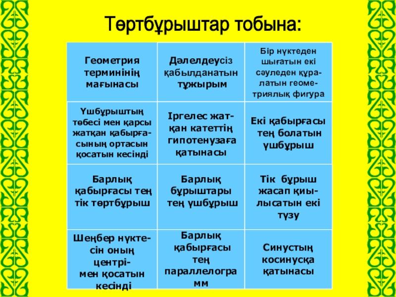 Төртбұрыштар тобына: