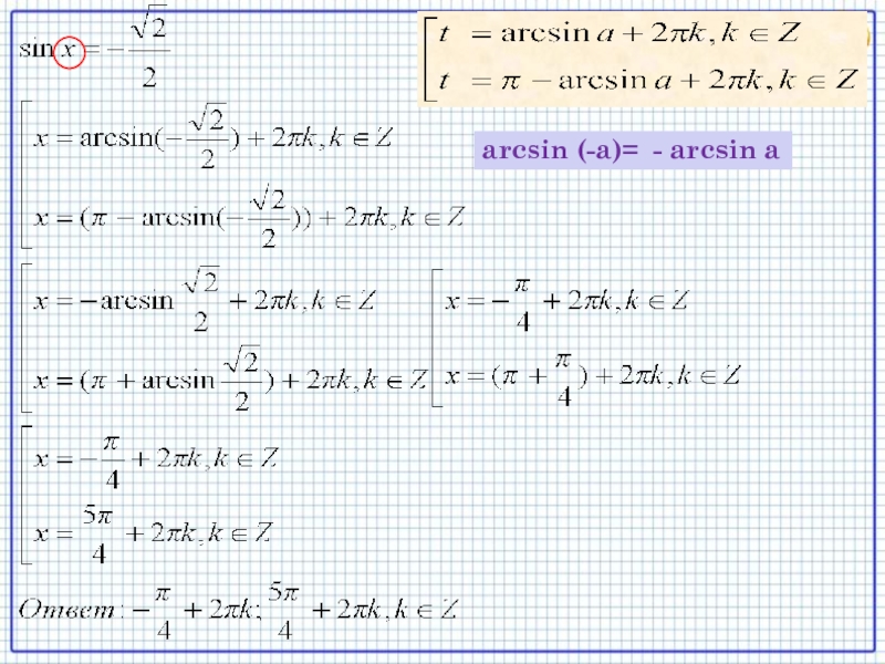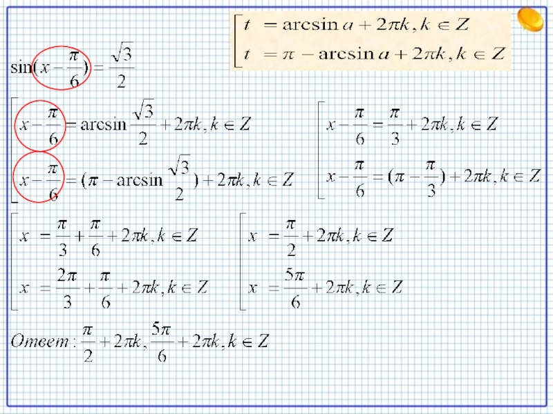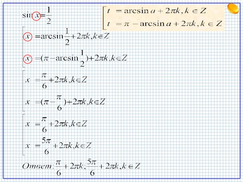 Уравнение sin t = a