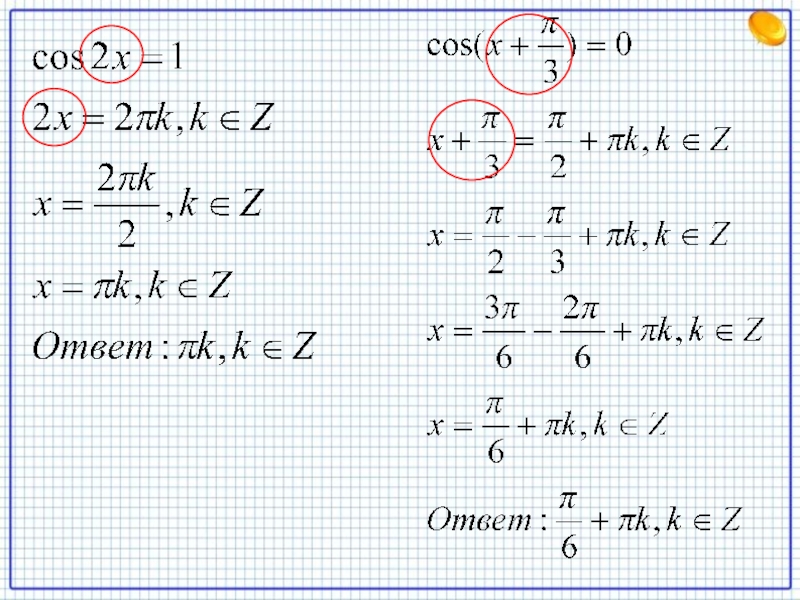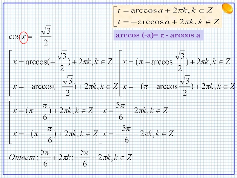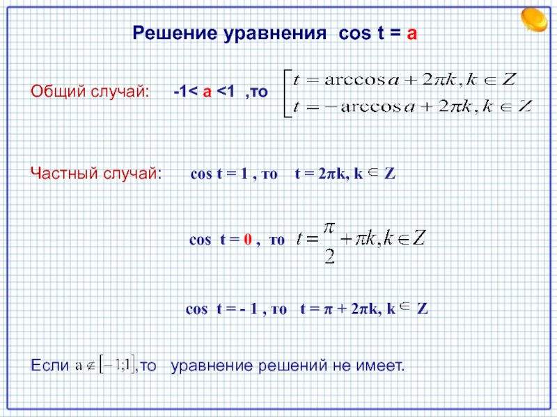 Уравнение cos t = a
