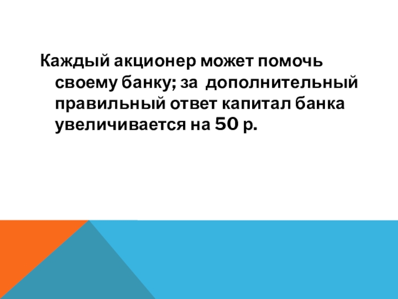 Каждому банку предлагается по очереди выбрать себе задание стоимостью от 50 до 200 руб.
