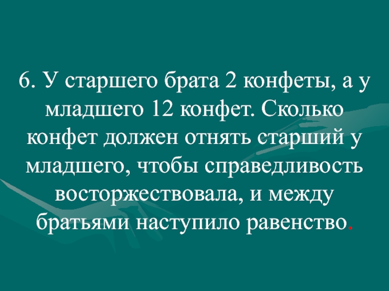 Сколько конфет должен отнять старший у младшего, чтобы справедливость восторжествовала, и между братьями наступило равенство.