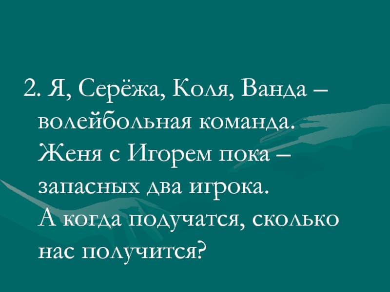 2. Я, Серёжа, Коля, Ванда – волейбольная команда.