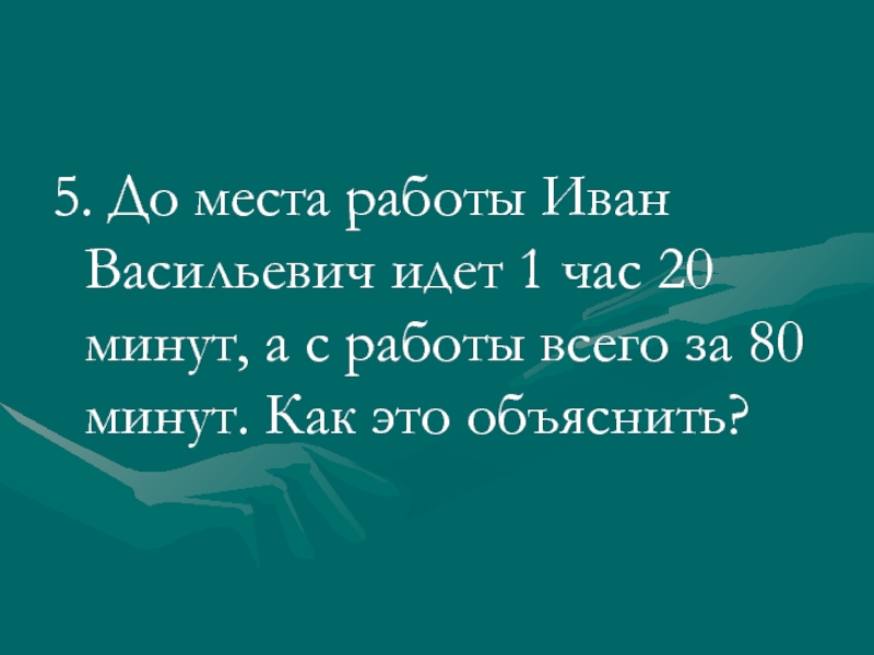 5. До места работы Иван Васильевич идет 1 час 20 минут,