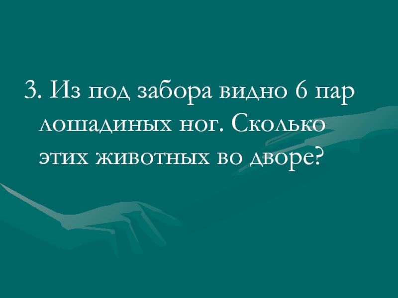 3. Из под забора видно 6 пар лошадиных ног. Сколько этих
