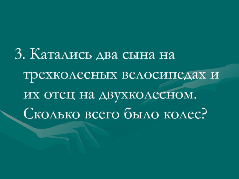 3. Катались два сына на трехколесных велосипедах и их отец на