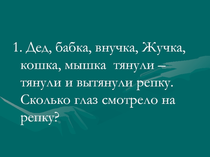 1. Дед, бабка, внучка, Жучка, кошка, мышка тянули – тянули и