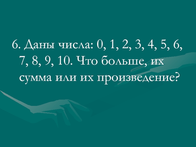 8, 9, 10. Что больше, их сумма или их произведение?