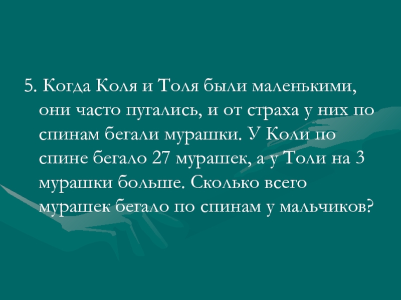 5. Когда Коля и Толя были маленькими, они часто пугались, и