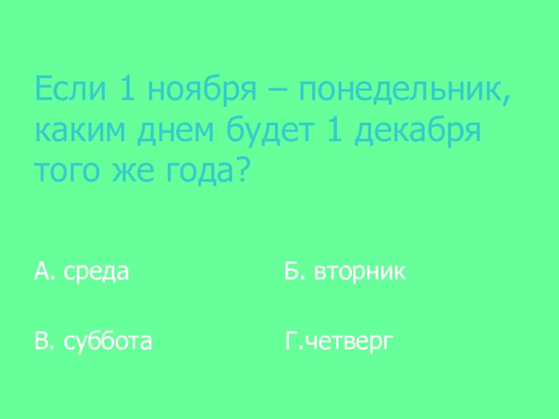 В. суббота Г.четверг