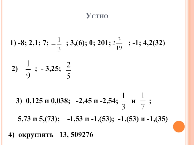 3) 0,125 и 0,038; -2,45 и -2,54; и ;