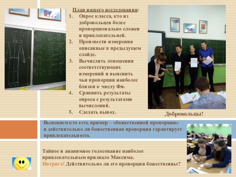 Опрос класса, кто из добровольцев более пропорционально сложен и привлекательней.