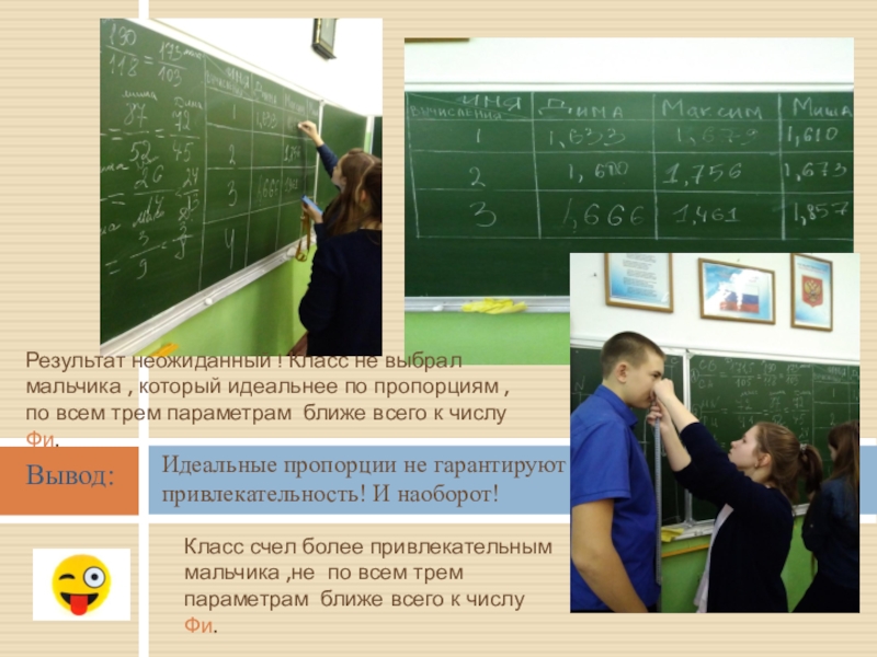 Класс счел более привлекательным мальчика ,не по всем трем параметрам ближе всего к числу Фи.