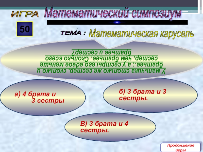 У мальчика столько же сестер, сколько и братьев.; а у сестры его вдвое меньше сестер, чем братьев. Сколько всего братьев и сестер?