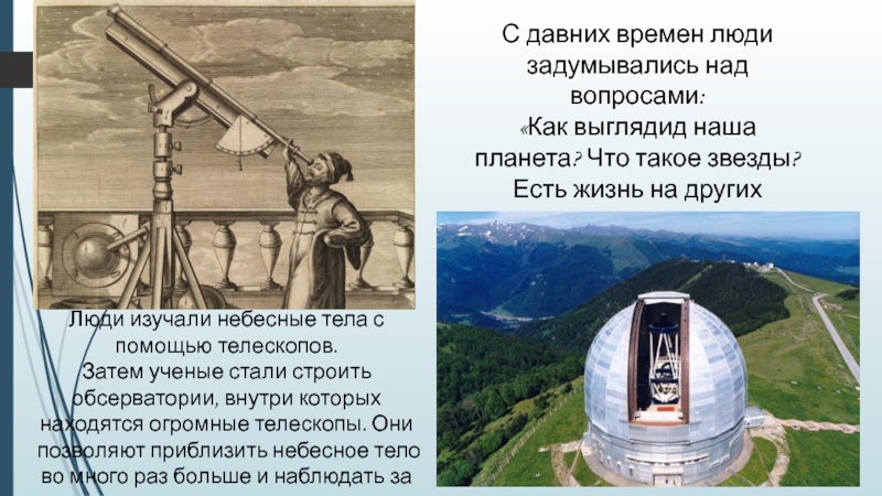 Люди изучали небесные тела с помощью телескопов.
