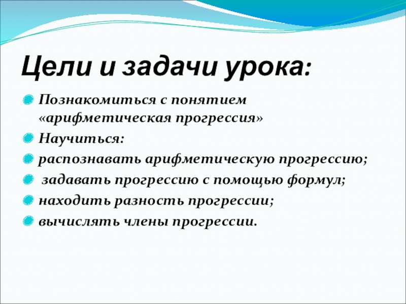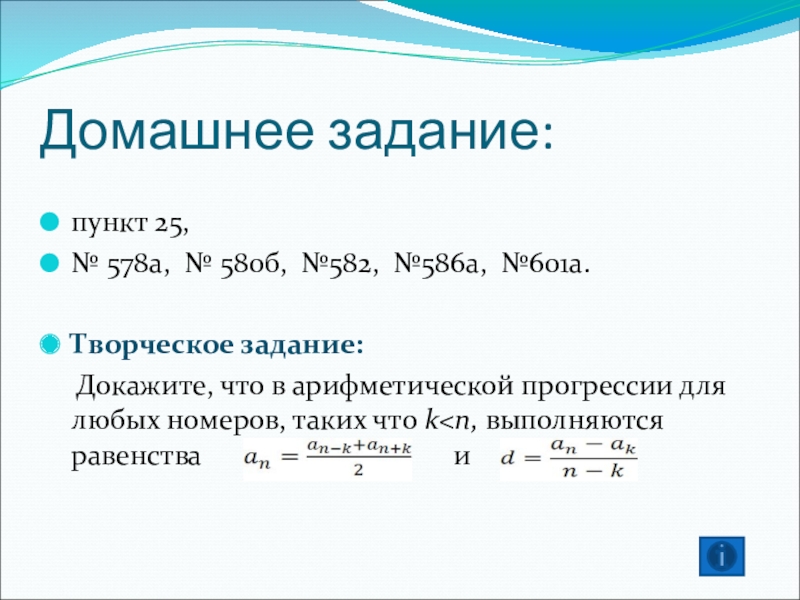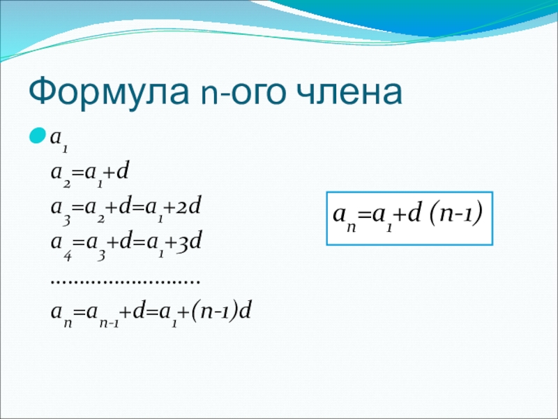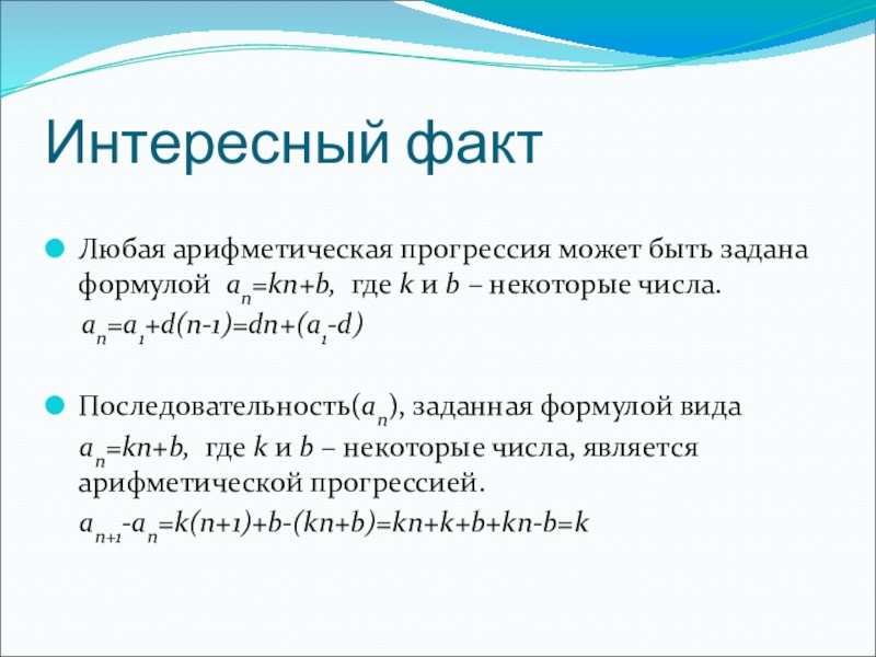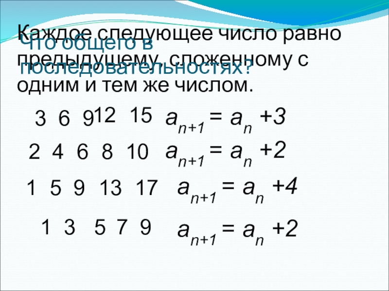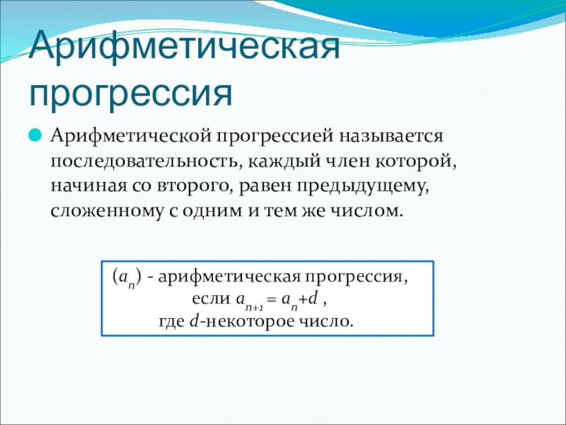 Число d, показывающее, на сколько следующий член последовательности отличается от предыдущего, называется разностью прогрессии.