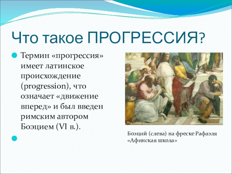 Боэций (слева) на фреске Рафаэля «Афинская школа»
