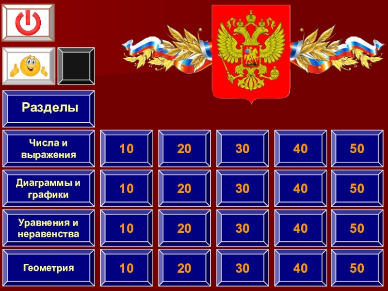 Числа ивыраженияДиаграммы играфикиУравнения инеравенстваГеометрия1020304050102030405010203040501020304050Разделы