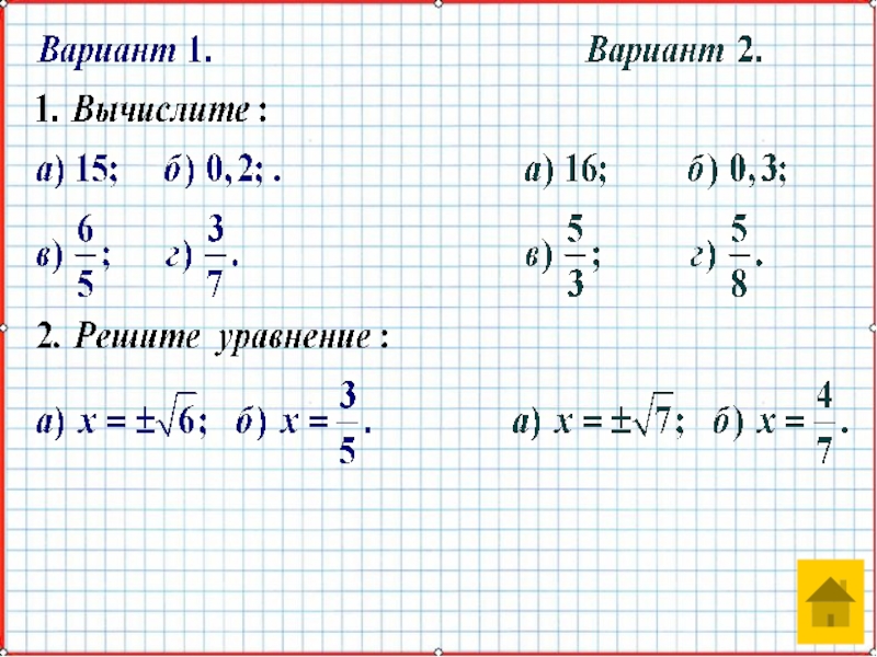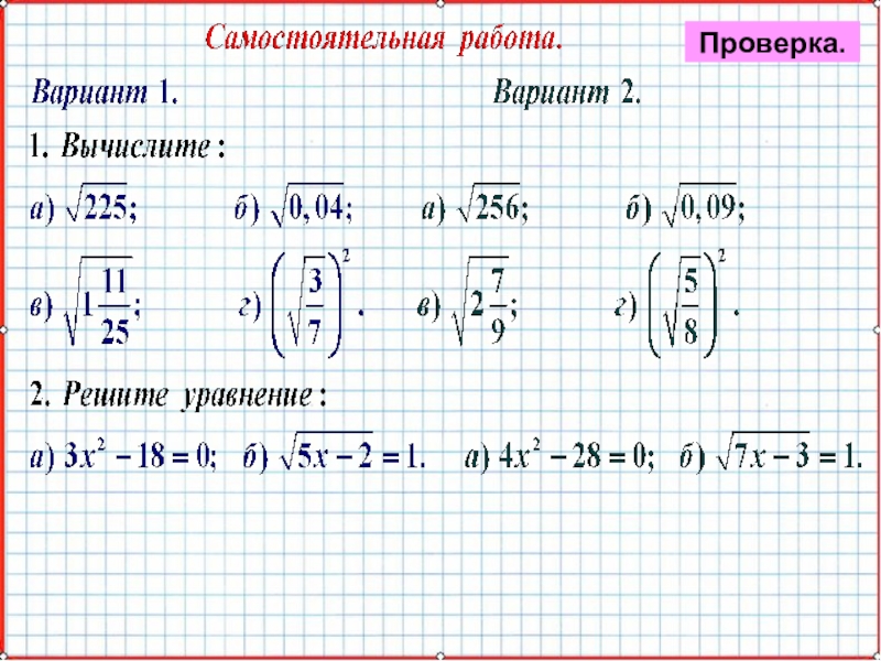 Понятие  иррационального числа.Домашнее задание:§ 11, № 1(в,г); 2(а,б); 4; 5(б,в); 6(а,б); 9; 13; 15(в,г); 17. Проверка