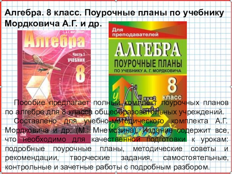 Слайд 14Алгебра. 8 класс. Поурочные планы по учебнику