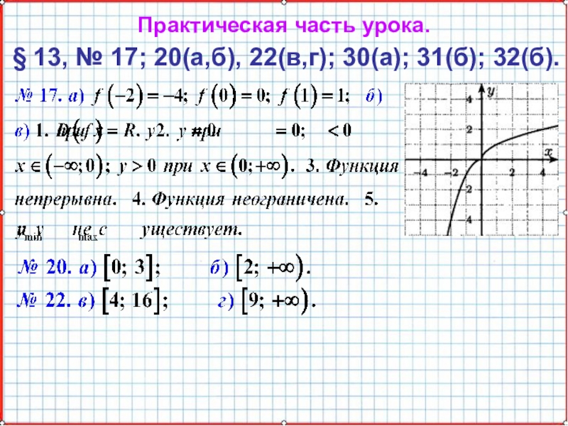 Практическая часть урока. § 13, № 17; 20(а,б), 22(в,г); 30(а); 31(б); 32(б).