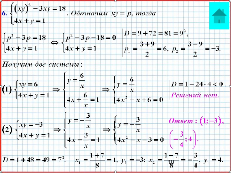 Дома:Ответ: (2;1;11). Ответ: (9;0). Ответ: (2;3), (3,2). Ответ: (9;32), (41;0).