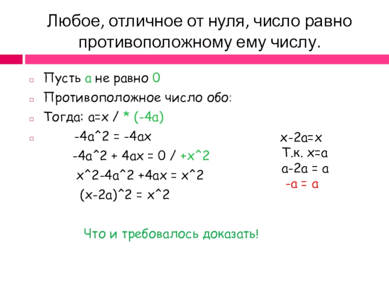 Слайд 19Любое, отличное от нуля, число равно противоположному ему числу.