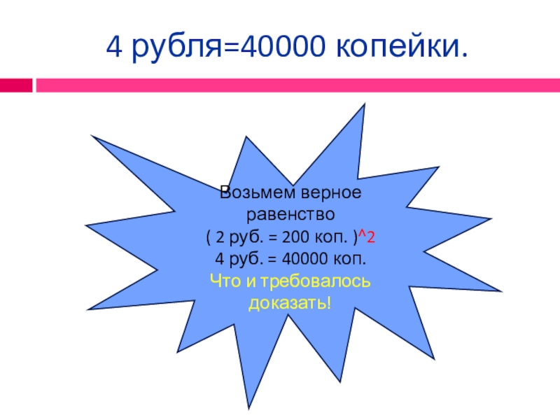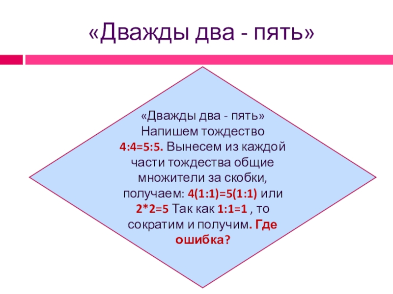 «Дважды два - пять» Напишем тождество 4:4=5:5. Вынесем