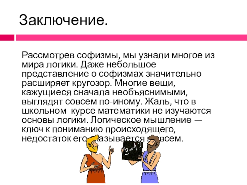 Рассмотрев софизмы, мы узнали многое из мира логики. Даже