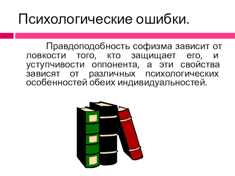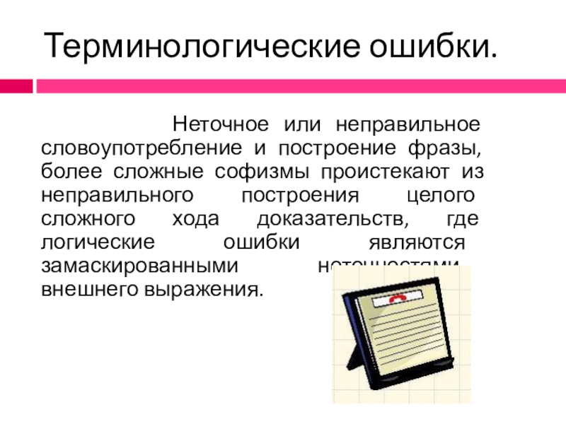 и построение фразы, более сложные софизмы проистекают из неправильного построения целого сложного хода доказательств, где логические ошибки являются замаскированными неточностями внешнего выражения.