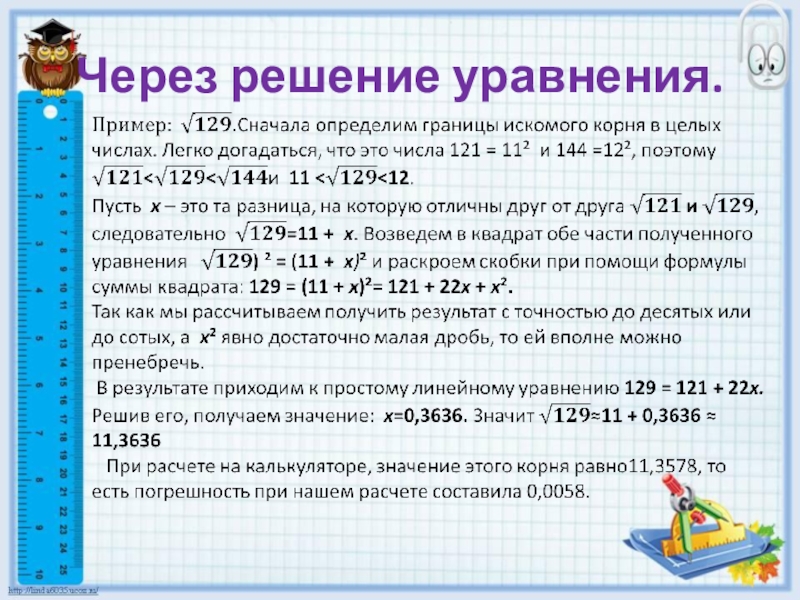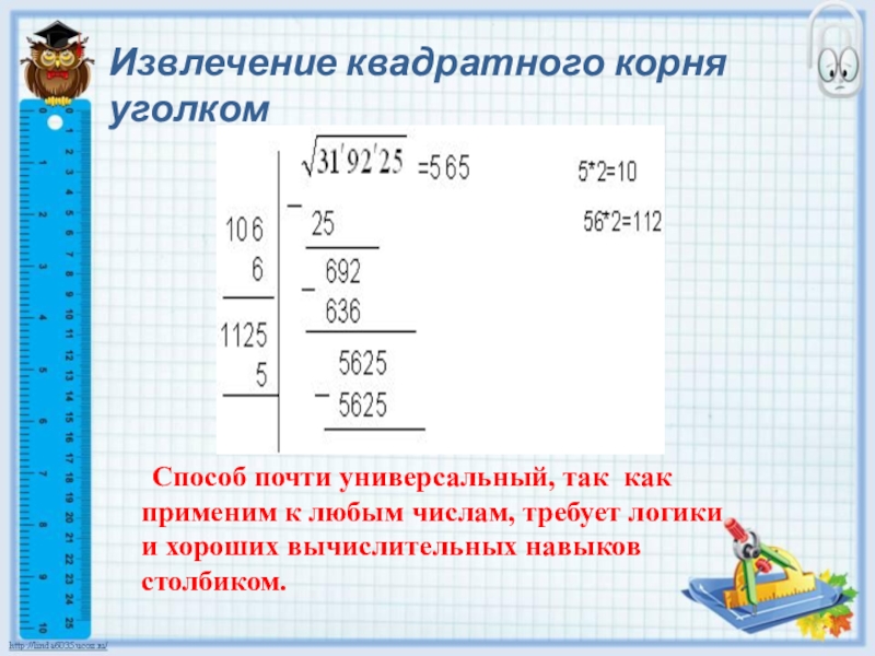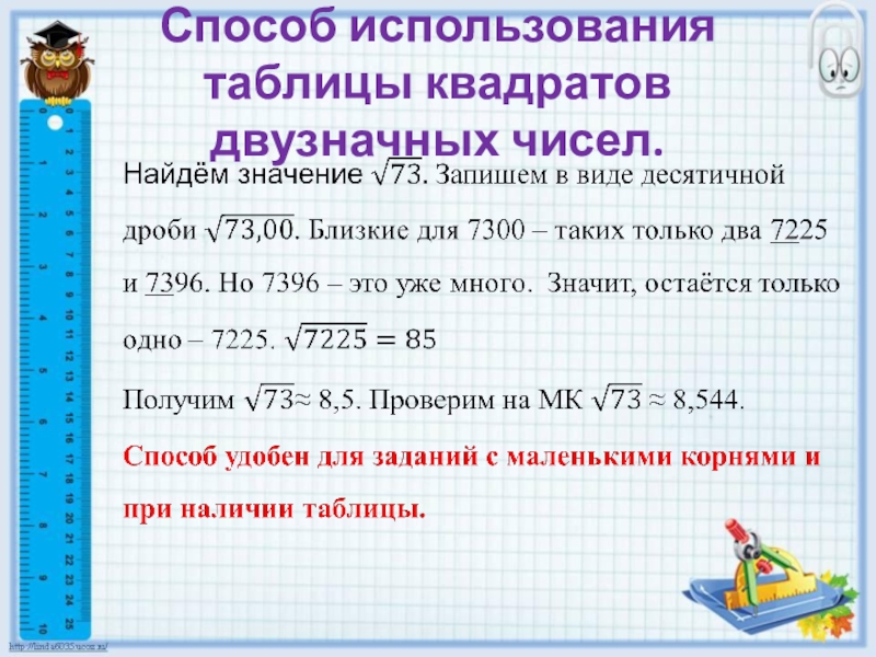 Способ вавилонян дает не совсем точное приближение к точному значению корня, хотя некоторые значения корня максимально приближены к точному ответу. Но без знания полных квадратов больших чисел и умения их быстро находить, результат извлечения будет найти крайне затруднительно.