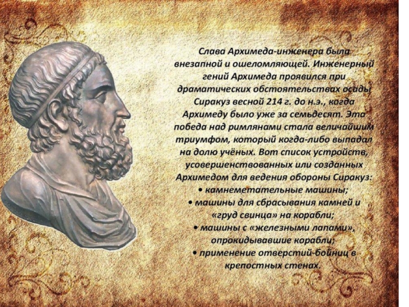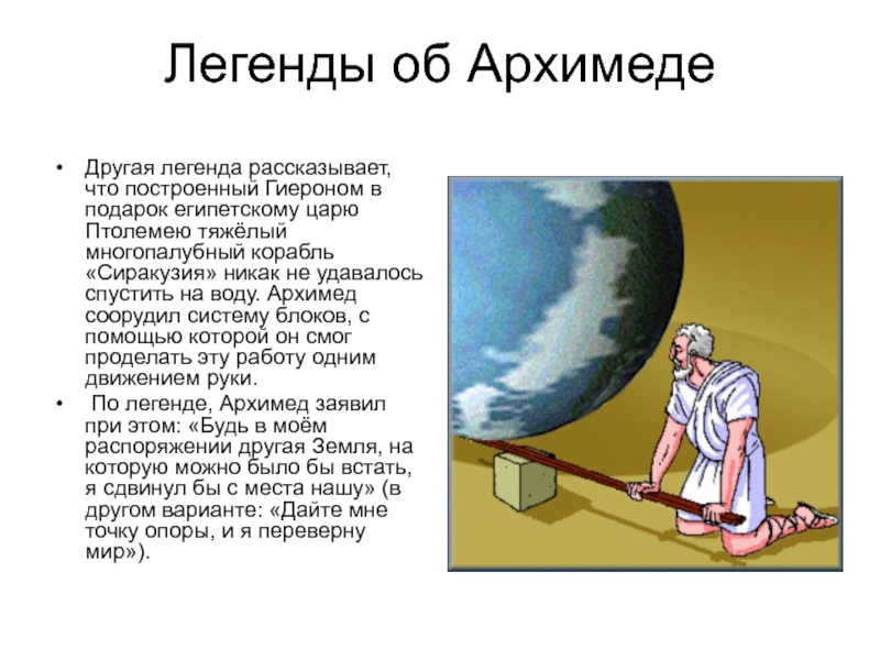 В этот момент был открыт основной закон гидростатики – закон Архимеда.