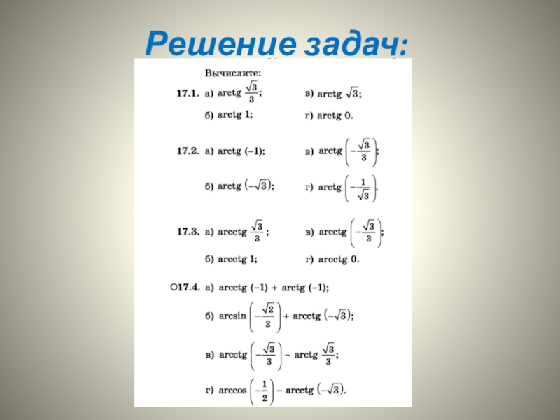 Презентация, доклад по математике Арктангенс и арккотангенс. Решение уравнений