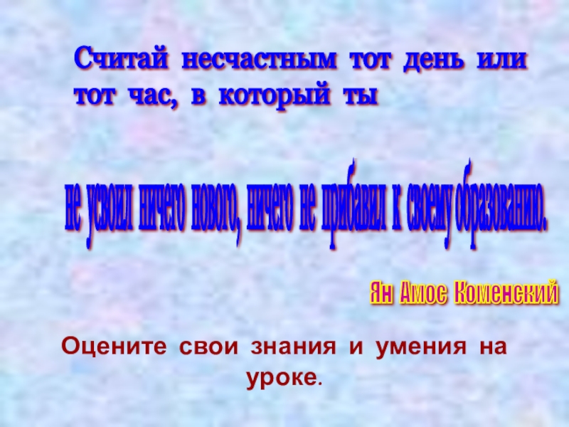 Оцените свои знания и умения на уроке.