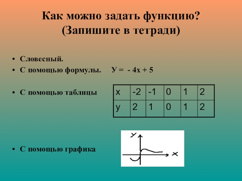 Слайд 7Как можно задать функцию? (Запишите в тетради)