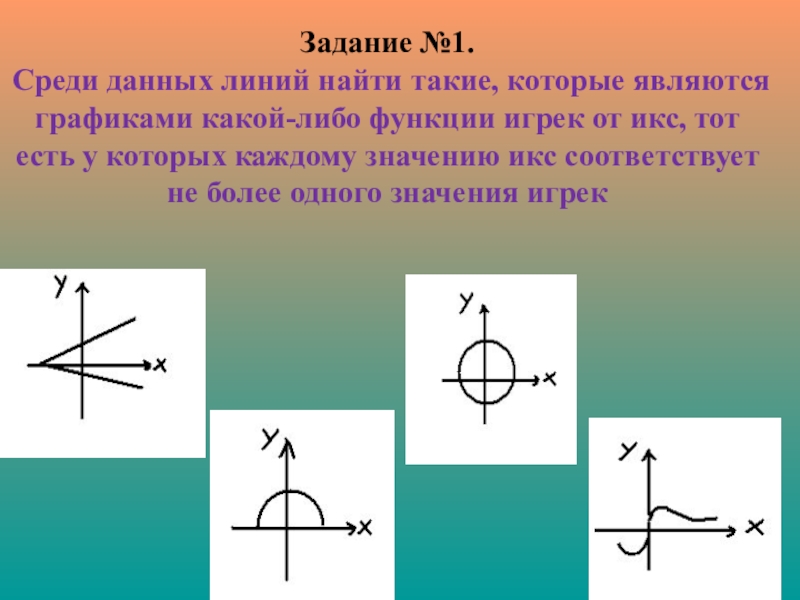 Слайд 8Задание №1. Среди данных линий найти такие, которые являются графиками какой-либо функции